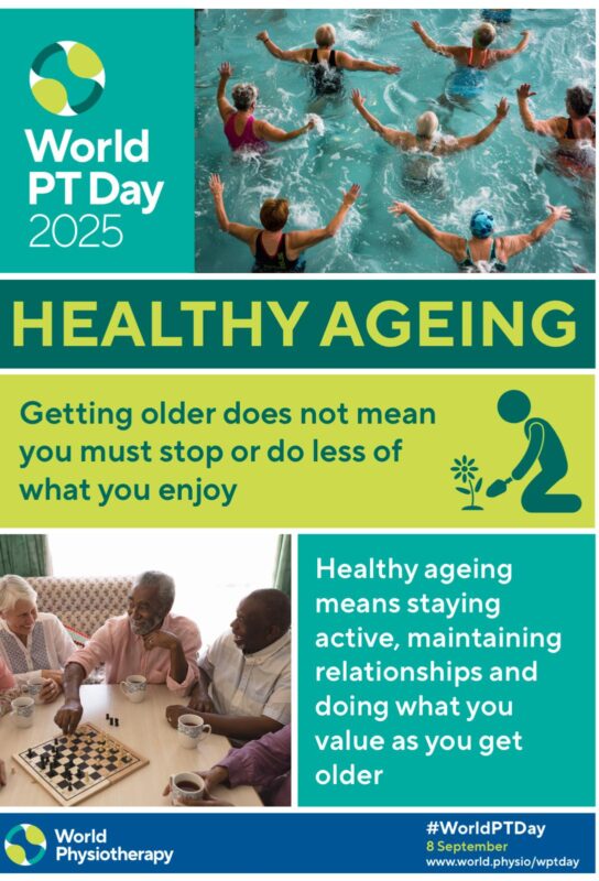 La Asociación Española de Fisioterapeutas (AEF) se suma a la conmemoración del Día Mundial de la Fisioterapia, que tendrá lugar el próximo 8 de septiembre de 2025, bajo el lema “Fisioterapia y actividad física para un envejecimiento saludable: prevención de la fragilidad y las caídas”. Esta campaña, impulsada por World Physiotherapy, pone el foco en el papel esencial que desempeñan la Fisioterapia y la actividad física en el envejecimiento saludable, con especial atención a la prevención de la fragilidad y las caídas en personas mayores.